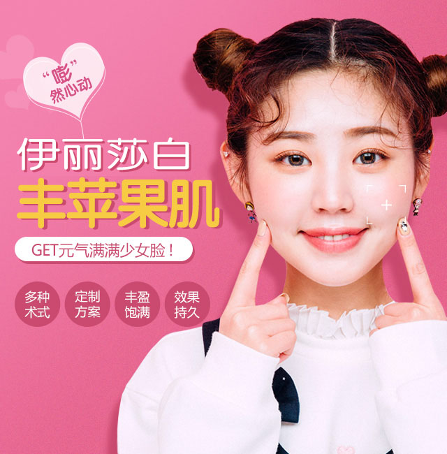 伊丽莎白注射丰苹果肌,将玻尿酸通过注射的方式填充进苹果肌凹陷处,让苹果肌饱满、充盈。